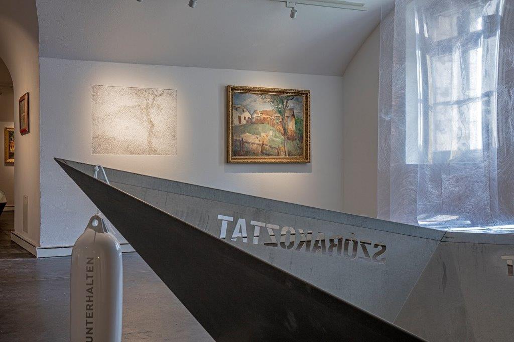 The exhibition, which featured works by Béla Onódi, Ernő Jeges, Mária Modok and József Bartl, among others, was based on the private collection of János S. Nagy and the museum's own paintings. The contemporary line was represented by the site-specific installations of Kamilla Siirj, Ottó Vincze and Lajos Csontó, which brought the exhibition together into one huge work of art. At the exhibition, Otto Vincze exhibited his work entitled The Legal Frame (boat) owned by our collection.