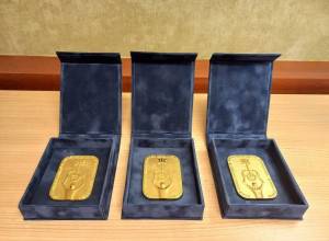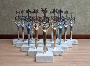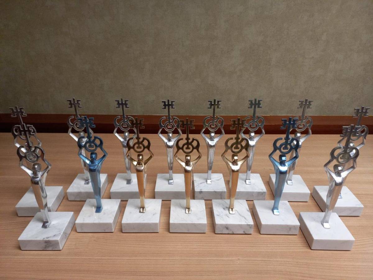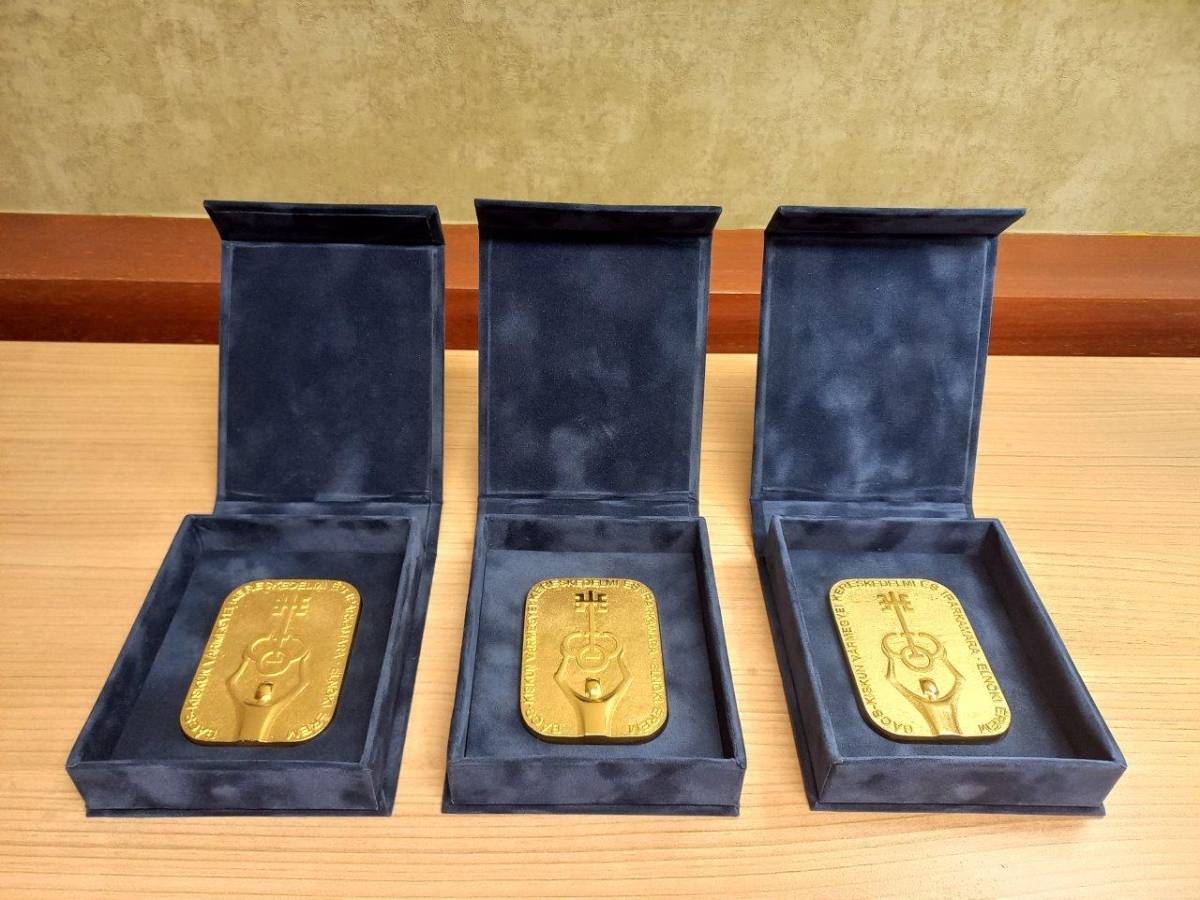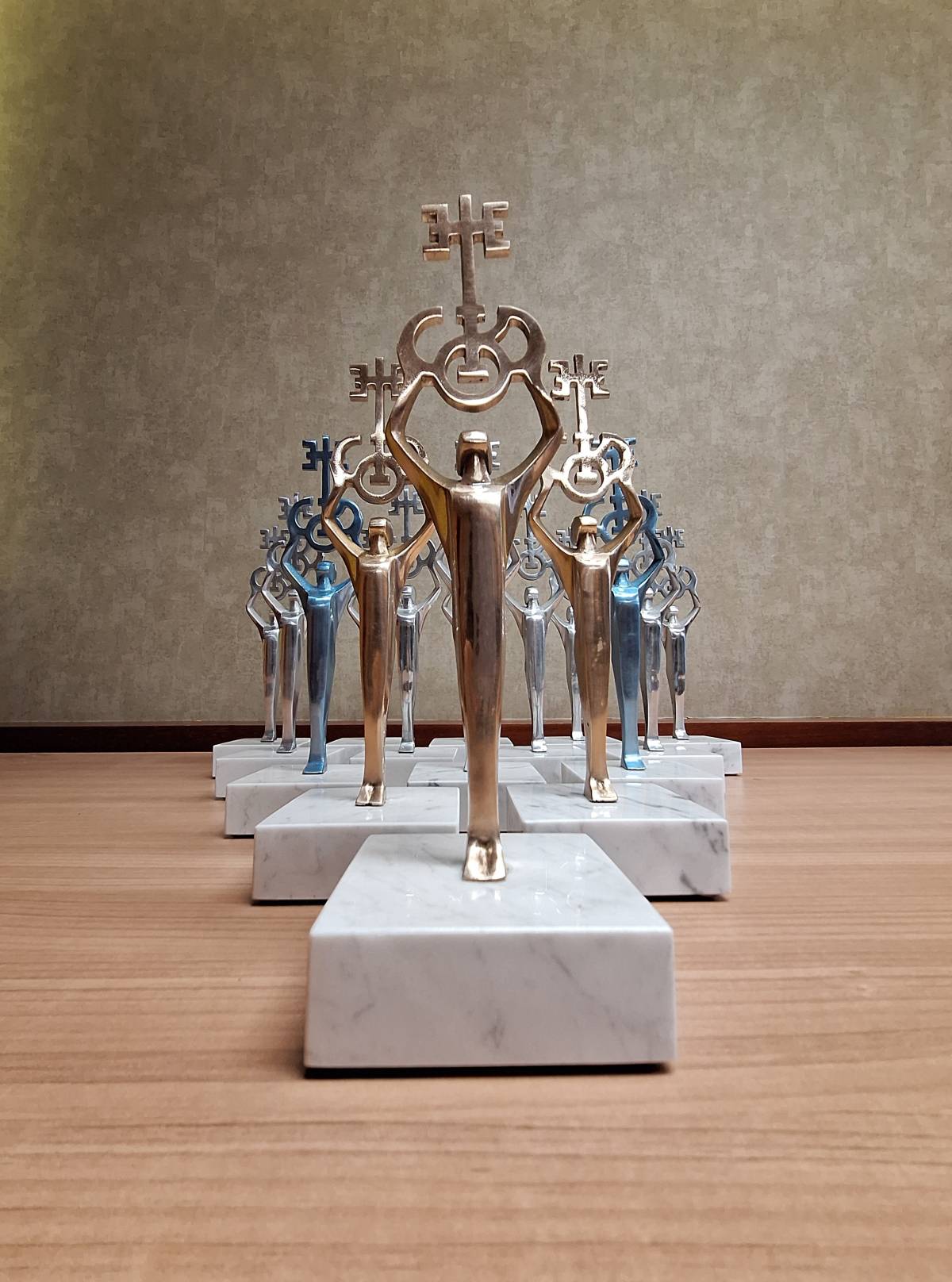 The Bács-Kiskun County Chamber of Commerce and Industry once again entrusted the K-ARTS Art Foundation with the production of its entrepreneur awards. In addition to the figurative sculptures, we were also tasked with making the so-called presidential medals. These decorative plaques were born in a gold-plated format, in a blue velvet gift box.